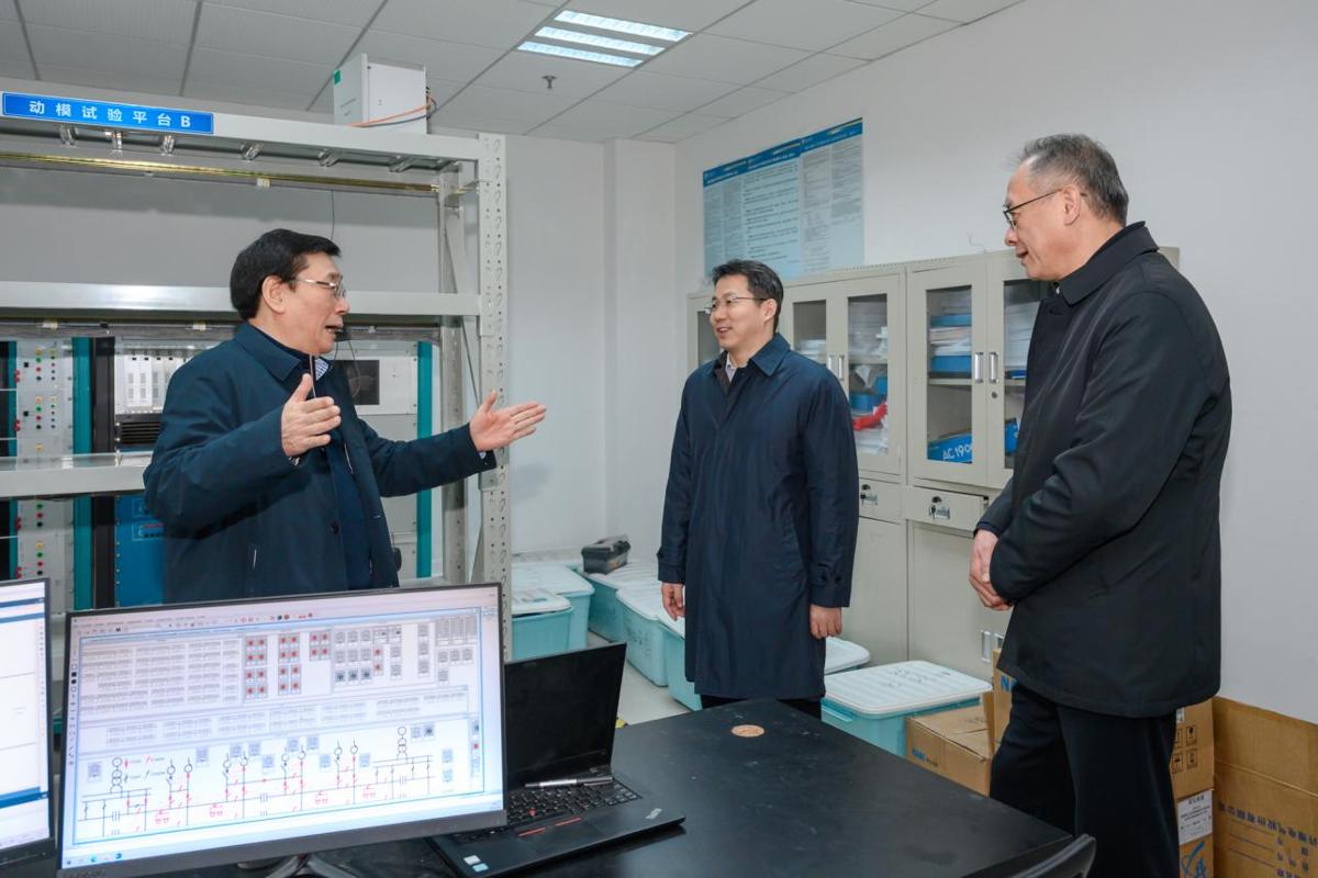 高仕斌院士向路松明一行详细介绍了智能仿真实验室、“网-源-储-车”实验室等平台建设情况。他表示,当选院士既是荣誉更是责任,未来将继续立足科研一线,带领团队深化基础研究,攻克核心技术,加速成果转化,为我国轨道交通科技自立自强与产业高质量发展作出更大贡献。