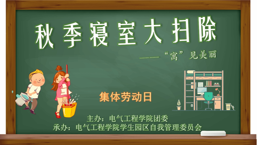 (2)以压缩包附件形式提交,附件名称统一格式为:“学号+姓名+电话”,邮件主题统一填写:秋季寝室大扫除,并于2023年11月23日之前发送至邮箱:dianqiyuanqu@163.com 。所有提交作品人员可获得社会实践与志愿服务第二课堂学时。学院将对作品进行评审,评选出优秀作品并发放奖品。