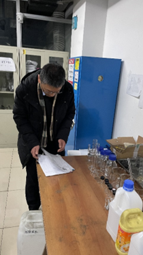 罗乾超书记对本次检查工作做了总体要求,包括落实学校的通知,仔细进行检查,强调安全工作无小事,不能有一丝马虎,同时要让老师和学生都提高安全意识,一起做好实验室的安全工作。本次检查要重点做好易燃、易爆、易制毒、危险化学品、压力容器等重大风险源的排查工作,其次做好实验场所环境卫生整治。检查组在检查中发现部分实验室卫生较差、物品摆放杂乱、实验室记录不全、摆放食物等问题,及时指出并要求立即整改。